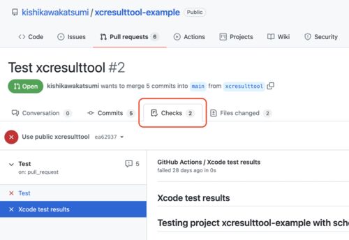 Xcodeによるユニットテストの実行結果をCIサービスの画面で確認するのはなかなか大変です。 GitHubにはCIのステータスをそこそこリッチな画面表示として返せて、Pull Requestの画面から1クリックでアクセスできるGitHub Checksがあるのでそこで確認できれば…